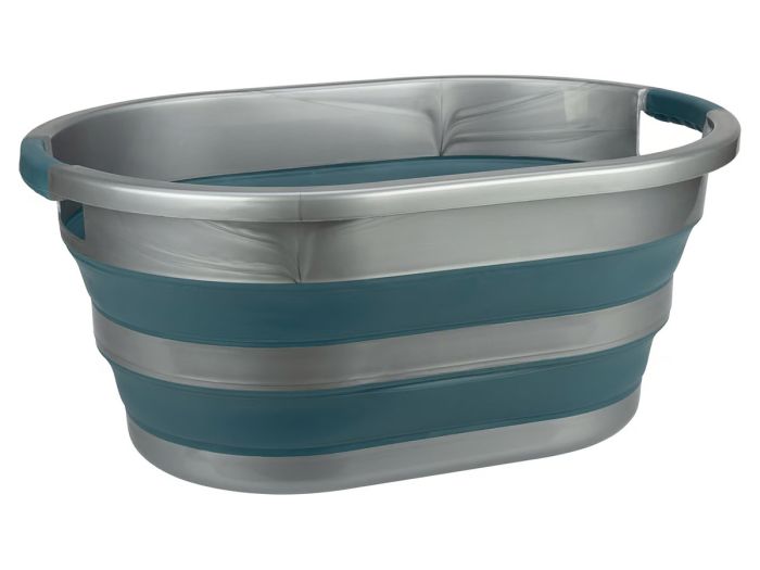 Die Waschwanne lässt sich leicht zusammenklappen und verfügt über praktische integrierte Griffe. Mit einem Fassungsvermögen von 27 Litern und einem Gewicht von nur 1 kg ist diese Wanne geräumig und leicht zu transportieren.