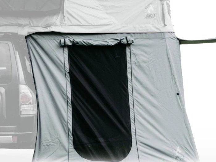 Das Arcta Viator Family Vorzelt - 160/190 cm ist ein praktisches Vorzelt, das unter das Arcta Viator Family Dachzelt gestellt werden kann.