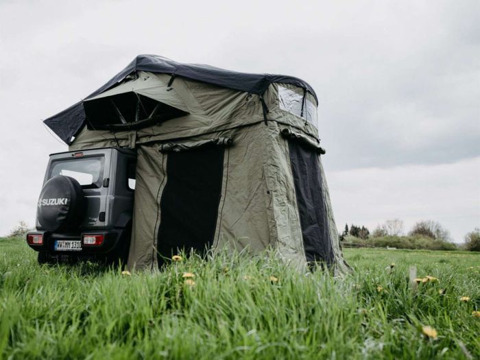 Das Arcta Viator 160 Pro Vorzelt - 190 cm ist ein praktisches Vorzelt, das unter dem Arcta Viator 160 Pro Dachzelt angebracht werden kann.