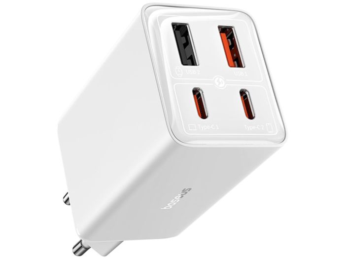 Laden Sie Ihre Geräte blitzschnell mit diesem Baseus Schnellladegerät. Dank GaN6-Technologie bietet dieser Adapter doppelte Ladegeschwindigkeit bei gleichzeitig hoher Leistung und kompakter Bauweise. Sie können bis zu 4 Geräte gleichzeitig laden. Der 65-W-USB-C-Anschluss ermöglicht das Laden von Samsung-Smartphones wie dem Galaxy S23 Ultra mit maximaler Geschwindigkeit. Zusätzlich zu den 2 USB-C-Anschlüssen stehen Ihnen 2 USB-A-Anschlüsse zur Verfügung, sodass Sie immer genügend Kapazität zum Laden all Ihrer Geräte haben. Im Lieferumfang enthalten ist außerdem ein 100-W-USB-C-zu-USB-C-Kabel (1 m). Ausgang USB-C 1/2: max. 65 W. Ausgang USB 1: max. 30 W. Ausgang USB 2: max. 5 W. Vorteile des Baseus GaN6 65-W-Schnellladegeräts: 65-W-Ladegerät, lädt bis zu 4 Geräte gleichzeitig, zusätzliches 1 m langes USB-C-zu-USB-C-Kabel mit 100 W Leistung im Lieferumfang enthalten. Dank der GaN6-Technologie laden Sie Ihre Geräte mit Höchstgeschwindigkeit.