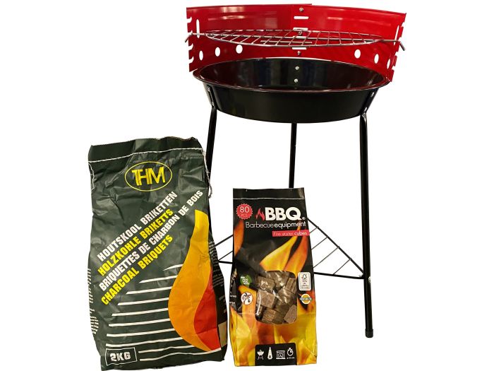 Dieses BBQ Geschenkpaket besteht aus dem halb offenen Holzkohlegrill in Kombination mit unverzichtbarem Grillzubehör. Der halb offene Holzkohlegrill verfügt über einen verchromten Rost mit einem Durchmesser von 29 cm. Da der Grill halb offen ist, fungiert die Rückseite auch als Windschutz. Der Rost kann in 4 verschiedenen Höhen befestigt werden. Der Grill steht auf 3 Beinen und verfügt über ein praktisches Regal, in dem Sie beispielsweise Ihre Werkzeuge oder Ihre Holzkohle aufbewahren können. Der Grill hat eine Größe von 33 x 32 x 55 cm.
