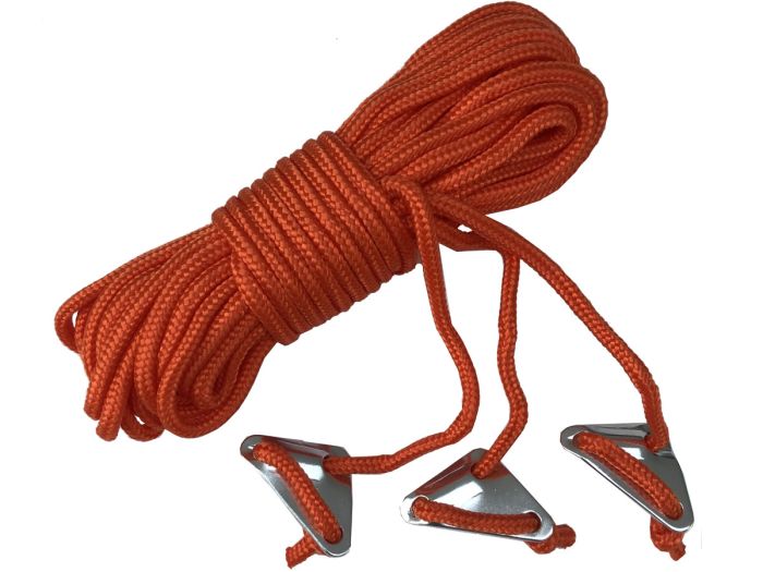 Die Abspannleinen sind 350 cm lang und können mit dem Aluminium Abspannseilspanner problemlos verstellt und gespannt werden.