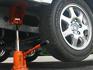 Sie können auch einfach ein paar Bretter unter den Reifen legen. Dazu haben Sie einen Wagenheber nötig, damit Sie den Reifen vom Untergrund anheben können. Dann können Sie ein paar Holzlatten oder andere Hilfsmittel dort platzieren, auf denen der Reifen dann liegt. Achtung: Das Verwenden von Holzlatten oder Holzbalken ist meistens nicht langfristig. Sie können schon nach der ersten Benutzung kaputt gehen.