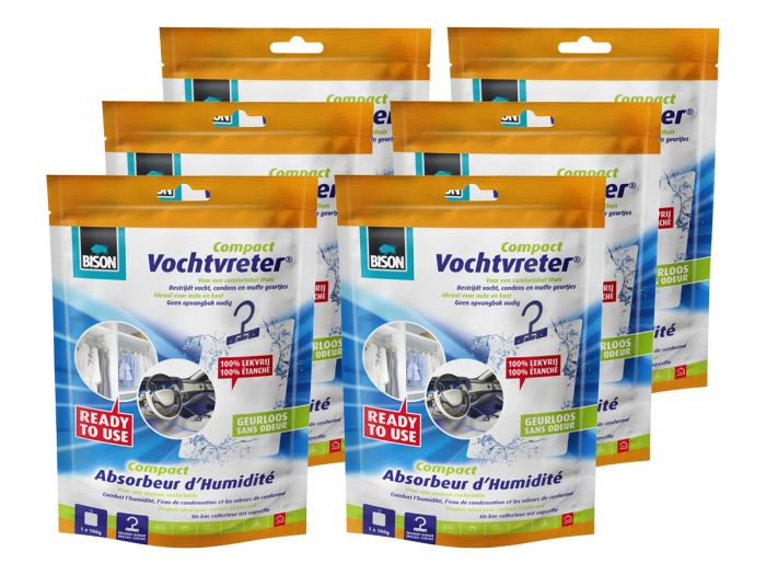 Bison Compact 100 gram vochtvreter met hanger - 6 stuks