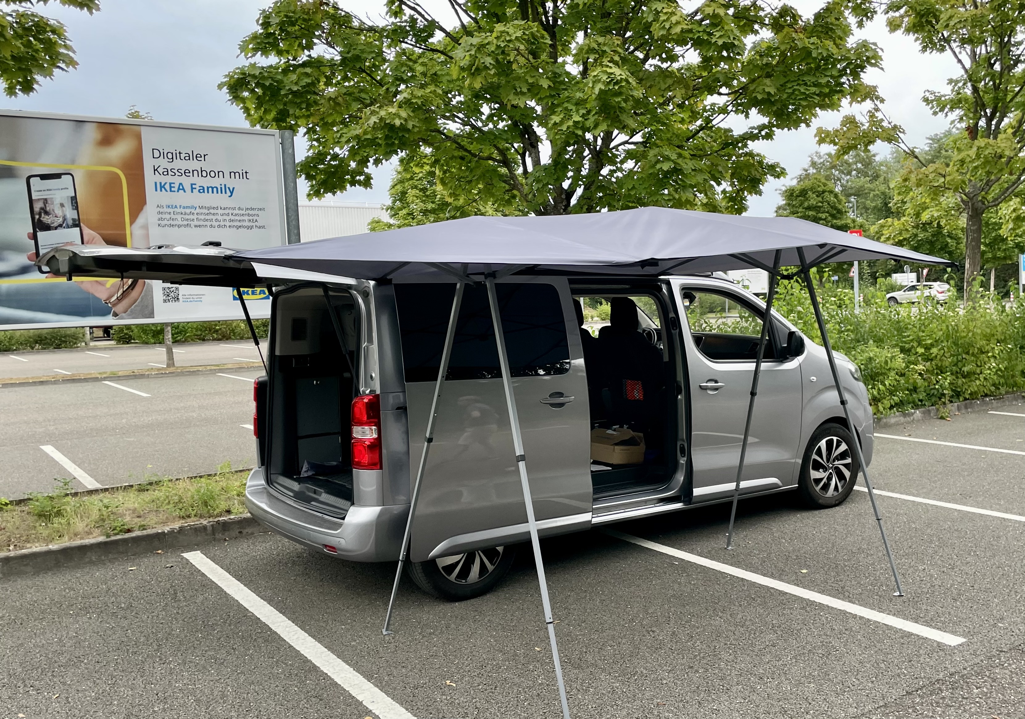 Dieses (Vor-)Zelt oder diese Markise ist mit aufblasbaren Luftschläuchen anstelle von Zeltstangen ausgestattet