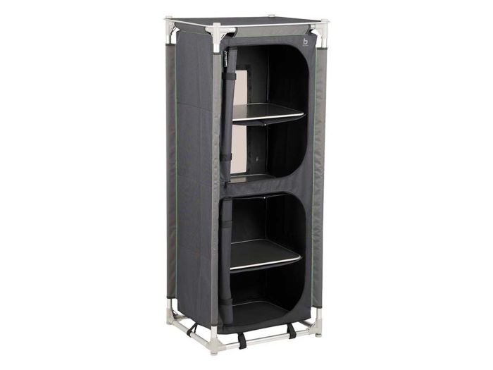 Der Bo-Camp Emerald hoher Schrank ist ein schmaler, aber hoher Campingschrank mit einem Aluminiumrahmen.