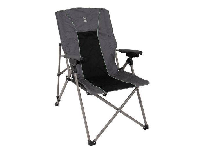 Der Bo-Camp Fraser ist ein komfortable Stuhl, der kompakt zusammengeklappt werden kann und eine verstellbare Rückenlehne hat. Die Rückenlehne kann in drei verschiedene Positionen verstellt werden, sodass Sie immer in einer für Sie angenehmen Position sitzen können.