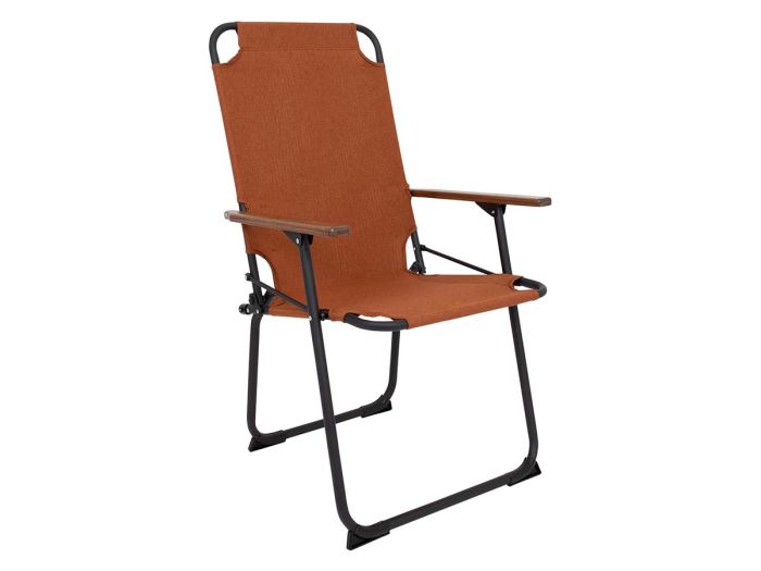 Ein extra hoher und breiter bequemer Klappstuhl. Ein klassischer und sehr kompakter Klappstuhl mit einem modernen industriellen Look. Ein Stuhl, der Stil, Komfort und Funktionalität vereint. Ausgestattet mit einer Cationic-Polsterung, einem leichten Aluminiumrahmen und Armlehnen aus Bambus. Ein idealer Stuhl für den Garten oder beim Camping, aber auch auf dem Balkon und im Wohnzimmer. Außerdem ist dieser Stuhl mit zusätzlichen Stabilisatoren und einem ""Sicherheitsschloss"" gegen ungewolltes Zusammenklappen ausgestattet. Kompakt zum Mitnehmen