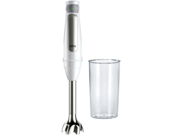 Braun MQ7020 WH Stabmixer, 1000 W, BPA-frei, stufenlose Geschwindigkeitsregelung, mit Mixbecher, Weiß, Silber