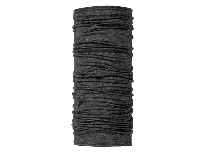 Der Buff Merino Wool Solid Grey Schal besteht zu 100 % aus Merino Wolle.