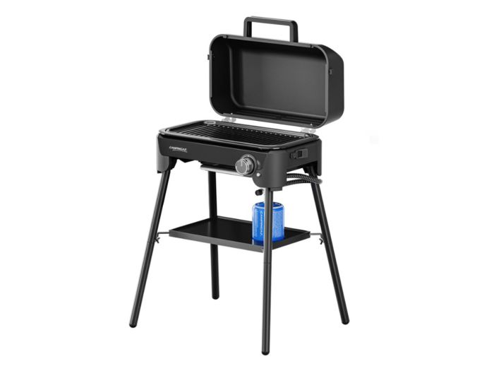 Der Grill misst 49 x 59 x 79 cm und funktioniert mit den kompakten Campingaz CV 470-Gaskartuschen.
