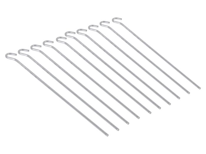 Diese Campking Erdnägel haben eine offene Öse und sind aus Stahl gefertigd. Diese Heringe sind, wie normale Erdnägel für die Befestigung von zum Beispiel, Bodenplanen, Faulstreifen und Innenzelten geeignet.