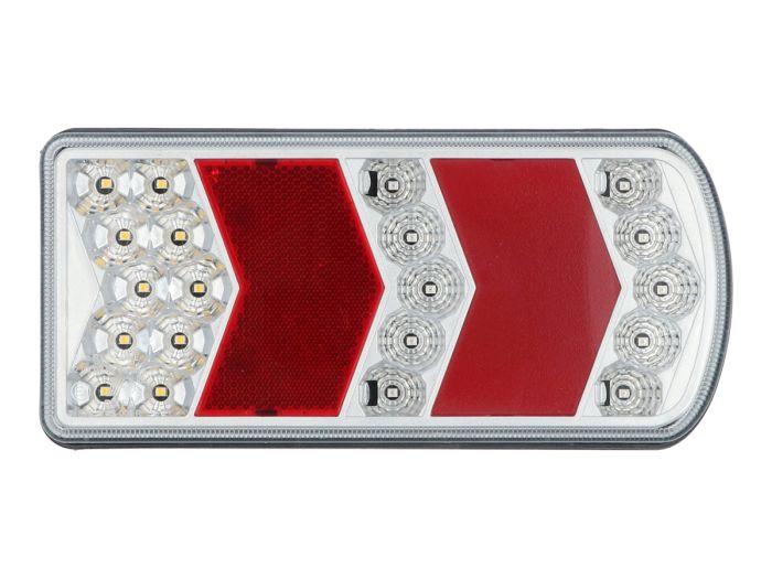 Carpoint 12/24 Volt LED-Rücklicht mit e-Prüfzeichen für die rechte Seite. 6 Funktionen; Bremslicht, Fahrtrichtungsanzeiger, Rücklicht, Kennzeichenleuchte, Rückfahrscheinwerfer und Reflektor. Inklusive Schraubbefestigung, Achsabstand 150mm. Die Größe ist 227x106mm.