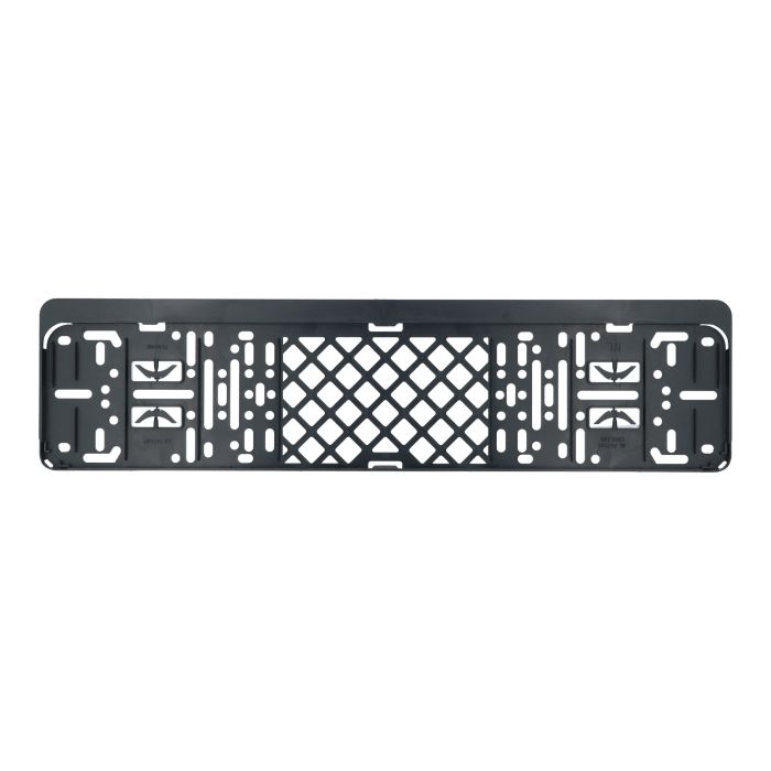 Die Grundplatte kann ohne Bohren angebracht werden. Ausgestattet mit einem Lochmuster, so dass Sie den Halter einfach an den ursprünglichen Befestigungspunkten montieren können. Das Kennzeichen kann einfach in den Halter eingeschoben werden und wird mit 4 Clips in jeder Ecke geklemmt.