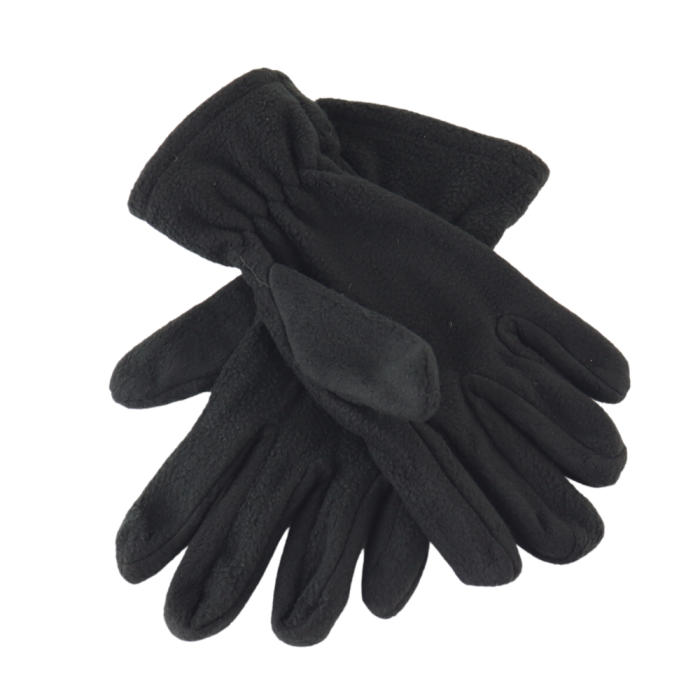 Deze basic zwarte handschoenen passen overal bij en houden dankzij het warme materiaal de kou buiten. De elastische polsband zorgt voor een nauwsluitende pasvorm om de pols, zodat de warmte daar niet kan ontsnappen. De handschoenen hebben een handig haakje om ze bij elkaar te bewaren en zijn gemaakt van 100% polyester.