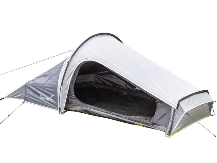 Er kunnen maximaal twee personen slapen in deze handige en kleine tent, en met zijn extreem compacte pakmaat en gewicht van minder dan 3 kg past hij ook in bijna elke rugzak. Na een lange dag toeren heeft iedereen baat bij het snel en eenvoudig opzetten van de tent - gewoon de twee glasvezelstokken erin steken, de slaapcabine ophangen en tot slot alles goed vastbinden, klaar!