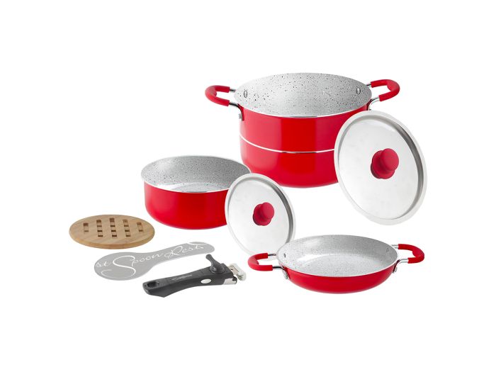 Vielseitigkeit: Verschiedene Topfgrößen und ein praktischer Multifunktionsgriff machen das Set vielseitig einsetzbar.