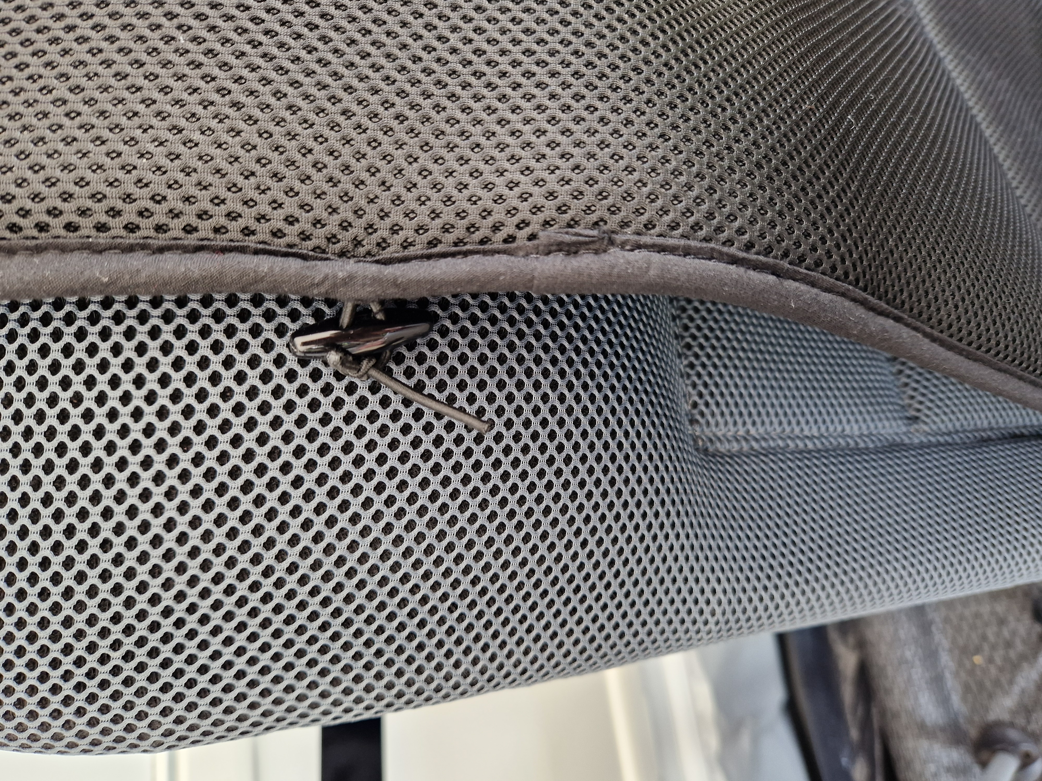 Dies ermöglicht es, den Bezug auf beiden Seiten zu verwenden. Die komfortable Polsterung dieses Bezugs ist besonders atmungsaktiv. Der Sitzbezug ist durch die Ösenkonstruktion univerzell einsetzbar.