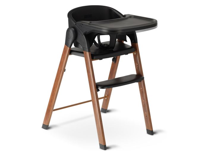 Deryan Luxus Hochstuhl – mitwachsend – klappbar – Schwarz mit Holzoptik