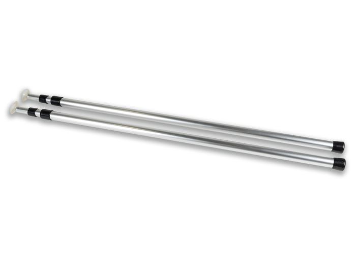 Wenn Sie eine Dometic Vorzelt haben, kann der Wind manchmal störend zwischen dem Wohnmobil und dem Vorzelt wehen. Mit diesen Druckstangen können Sie diese Lücke gut schließen. Sie klemmen den transparenten Saugnapf der Stange unter das Vorzelt und legen die andere Seite auf den Boden. Stellen Sie nun die Druckstange auf die richtige Höhe ein, ziehen Sie die Stange fest und drücken Sie das Vorzelt sauber und fest gegen Ihr Wohnmobil an.