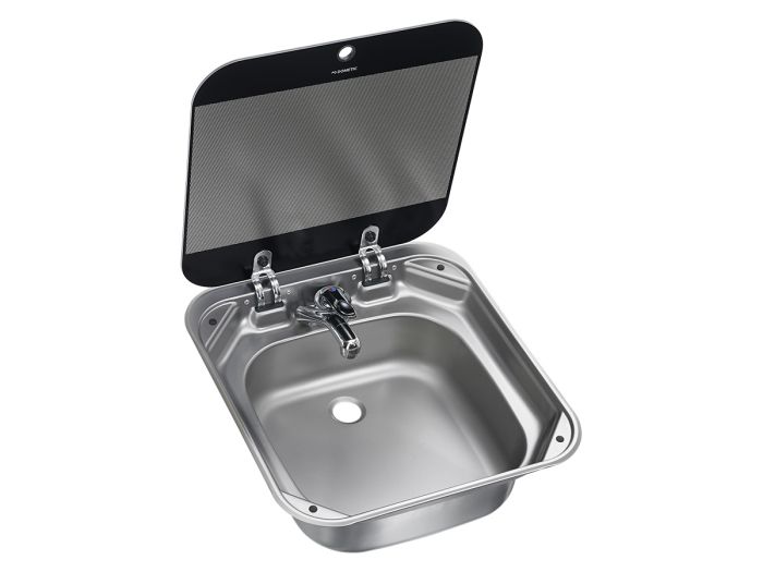Das Dometic SNG 4244 ist ein rechteckiges Spülbecken mit einer Glasabdeckung. Die Abdeckplatte besteht aus einem hitzbeständigem Sicherheitsglas.