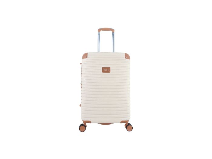 Reisen mit Klasse mit dem ELLE Glam-Koffer - ein stilvoller und zuverlässiger Begleiter für jede Reise. Er ist aus robustem ABS gefertigt und verfügt über einen Teleskopgriff, vier Doppelrollen für reibungslose Mobilität und ein versenktes TSA-Schloss für sicheres Reisen. Der vollständig gefütterte Innenraum mit U-Reißverschlussfach sorgt für Ordnung und Übersicht.