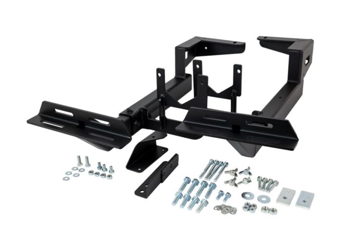 Das Set besteht aus einem Fahrgestelladapter, einer Gewindeplatte, einem Ersatzradhalter und allen erforderlichen Schrauben, Unterlegscheiben und Halterungen. Alles ist genau auf diese Fahrzeuge zugeschnitten. Die Verwendung von robusten Materialien und die soliden Befestigungspunkte am Fahrgestell sorgen für eine stabile Basis, auch bei längeren Fahrten oder schwereren Lasten.