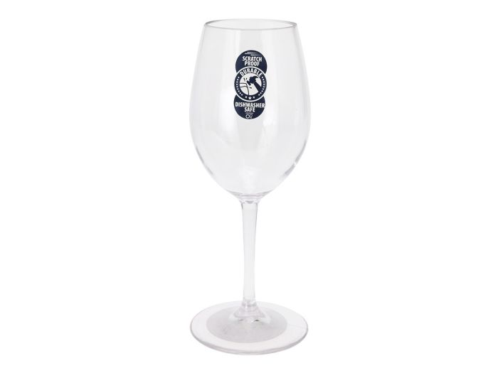 Das Weinglas ist aus transparentem Kunststoff hergestellt. Es ist robust und spülmaschinenfest. Der Durchmesser des Glases beträgt 5,50 cm und die Höhe des Glases 21 cm.