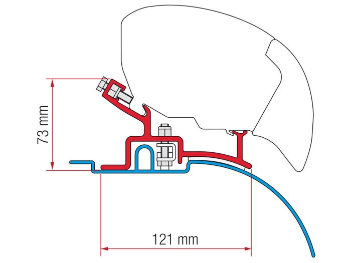 Der Adapter wird 'High Profile' genannt, weil die Markise höher auf dem Dach steht. Dadurch ist es auch möglich, die Markise bei geöffneter Schiebetür des Autos zu öffnen und zu schließen.