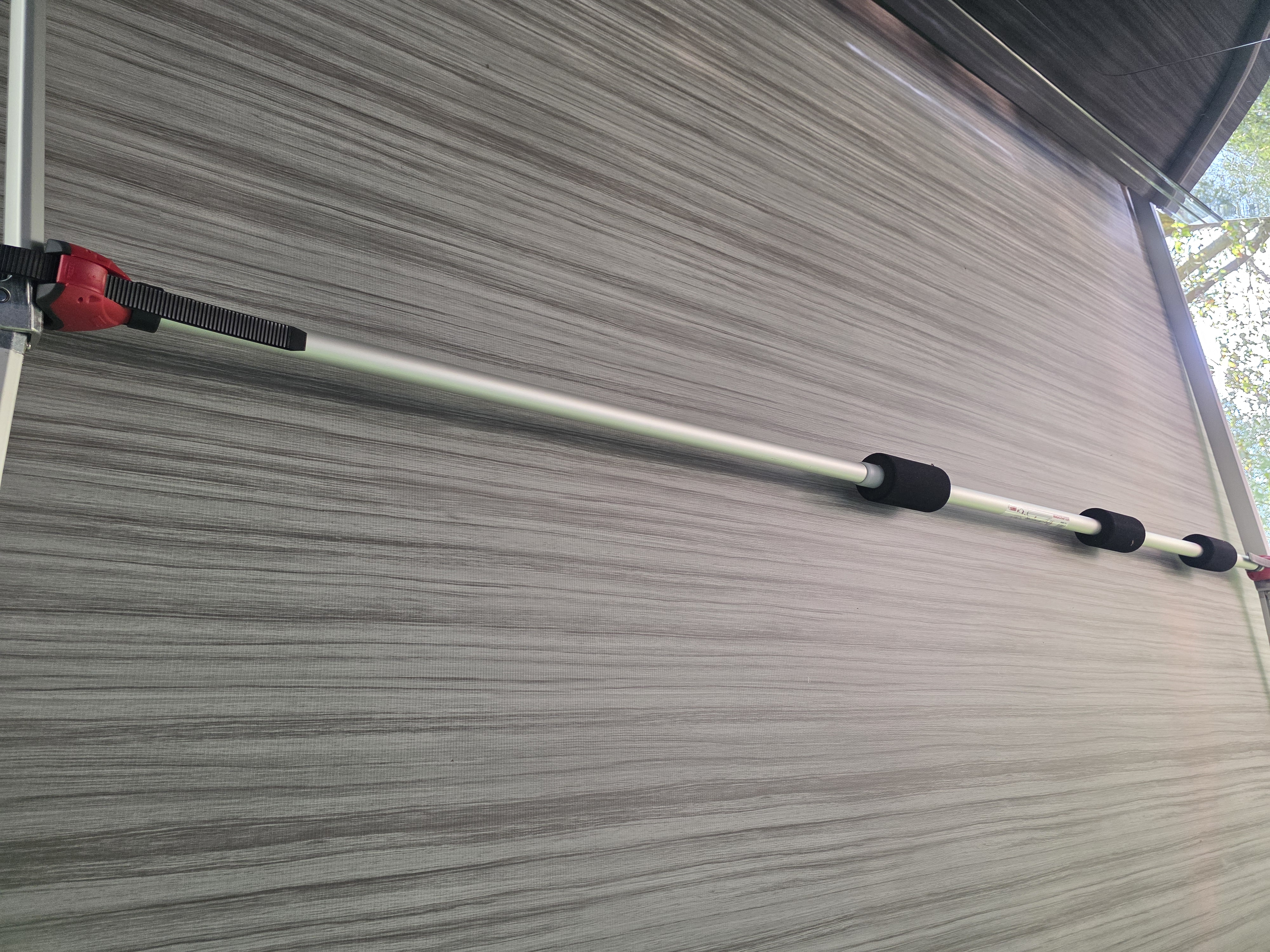 Der Fiamma Magic Rafter ist eine stabile Spannstange aus eloxiertem Aluminium. Er wird ganz einfach zwischen die Gelenke der Markisenarme gespannt und verhindert so, dass sich die Markisenarme bei Wind hin- und herbewegen. Die dicken Schaumstoffkissen verhindern das Durchhängen des Markisenstoffes und schützen den Markisenstoff vor Beschädigungen. Dank seiner einfachen und universellen Befestigung kann der Magic Rafter auch für Markisen anderer Hersteller verwendet werden.