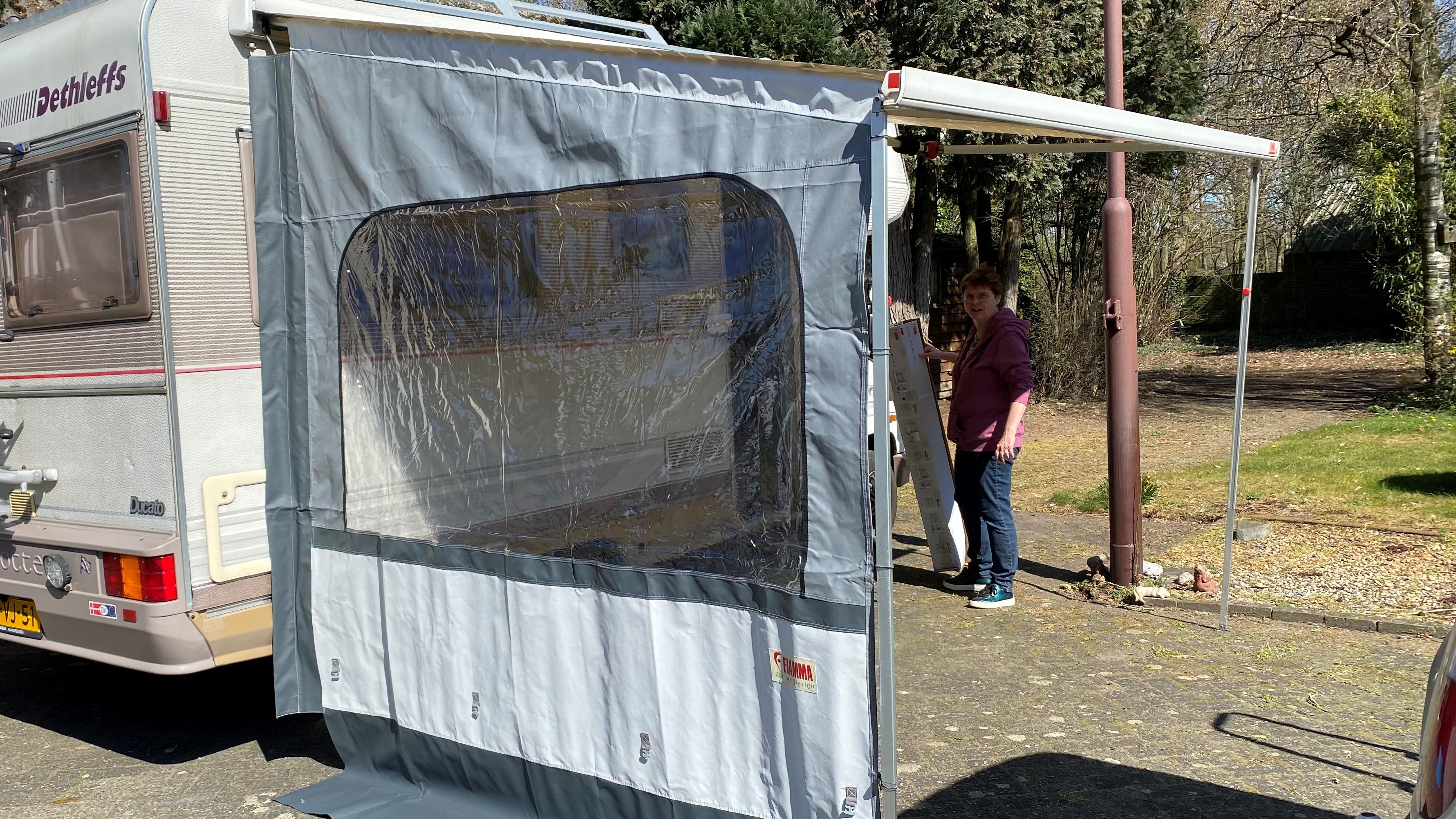 Möchten Sie unter Ihrer Markise etwas geschützter sitzen? Die Fiamma Side W schützt Sie vor Regen und Wind. Schieben Sie die mitgelieferte Spannstange durch die Seitenwand und klicken Sie das Ganze an Ihrer Markise fest. Jetzt können Sie auch bei schlechtem Wetter draußen sitzen.