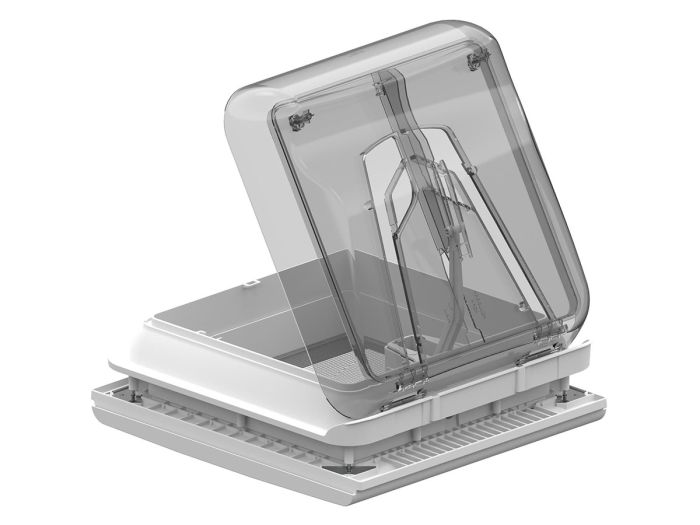 Der abgesenkte Rahmen dieser Dachluke macht ihn für jede Umgebung geeignet und seine aerodynamische Form macht den Einsatz eines Spoilers überflüssig. Die Dachluke ist mit einer Dauerlüftung und einem robusten Fliegengitter aus Aluminium ausgestattet.