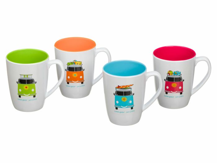 Das Flamefield Camper Smiles Tassenset hat eine farbige Innenseite und ein schönes Camperbild auf der Außenseite.