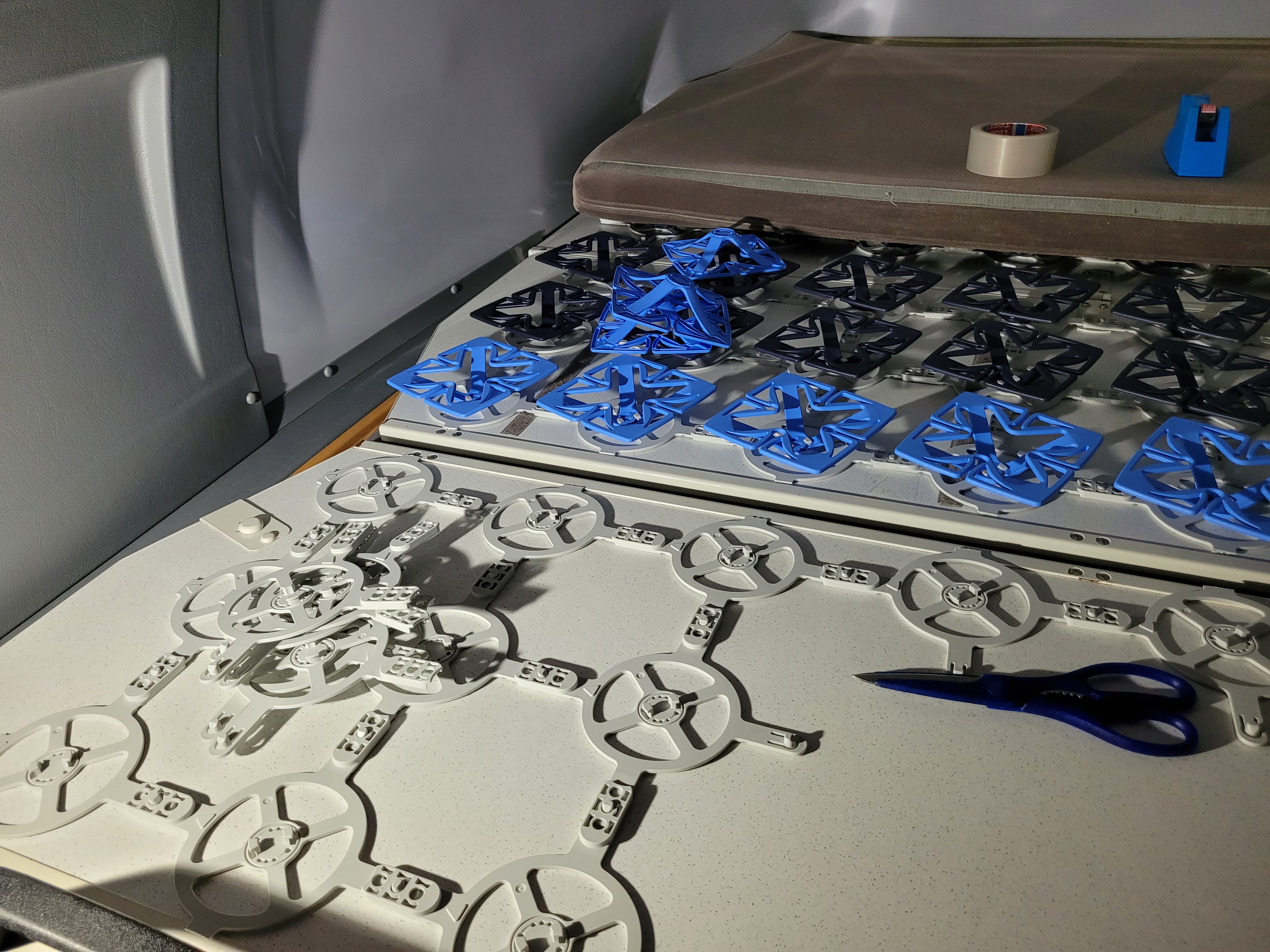 Mit dem Froli Travel Bettsystem schlafen Sie besser und Sie haben eine gute Belüftung unter der Matratze. Das Basispaket wiegt pro m² 2,6 kg pro Element 73 Gramm. Das Grundpaket besteht aus 48 Fußkreuze, 40 Federn Standard, 8 Federn Soft und 8 Spannkreuze