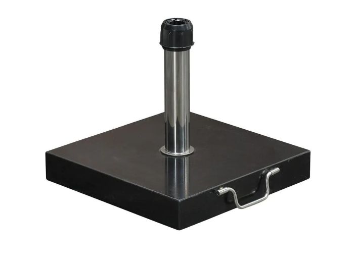 Dieser Sonnenschirmständer ist aus hochwertigem, poliertem Granit gefertigt: langlebig, wetterbeständig und pflegeleicht. Er ist für Stangenschirme mit einer Rohrstärke von 38 bis 55 mm geeignet und verfügt über ein Edelstahlrohr mit Drehknopf, mit dem Sie Ihren Sonnenschirm sicher befestigen können. Der Sockel misst 45 x 45 cm und ist 5 cm hoch (35 cm einschließlich Halterung).