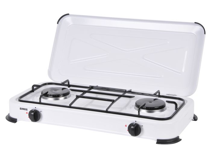 Der Gimeg 2-flammige Gaskocher in der Farbe weiß ist für ein optimales Kocherebnis mit zwei extra starke 2200 Watt Brenner ausgestattet.