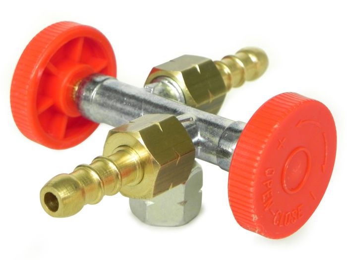 Das Gimeg Zweiwegeventil ist ein praktisches 2-Wege-Ventil, mit dem Sie Ihren Einzelausgang Ihres Gasdruckreglers in einen Doppelanschluss verwandeln können. Beide Ausgänge sind mit einem Ventil ausgestattet, das stufenlos eingestellt und geschlossen werden kann. Die Ausgänge sind mit 2 Drehgelenken mit Schlauchtülle versehen, die abnehmbar sind, so dass Sie links einen Anschluss von 2x 1/4" herstellen können.