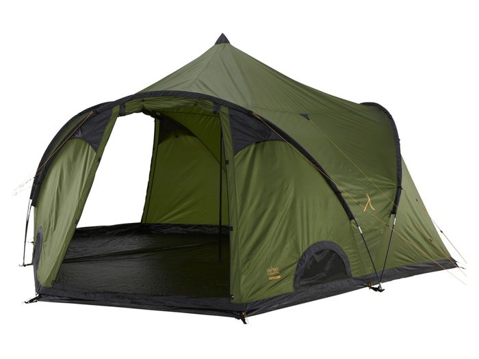 Mit dem Black Knob 10 interpretiert Grand Canyon Gruppenzelte im Tipi-Stil neu. Die gerade Tipi-Stange in der Mitte wird ergänzt durch drei identische Gestängebögen, die drei identische Eingänge bilden. Im gesamten Hauptteil des Zeltes kann man dadurch entspannt stehen.