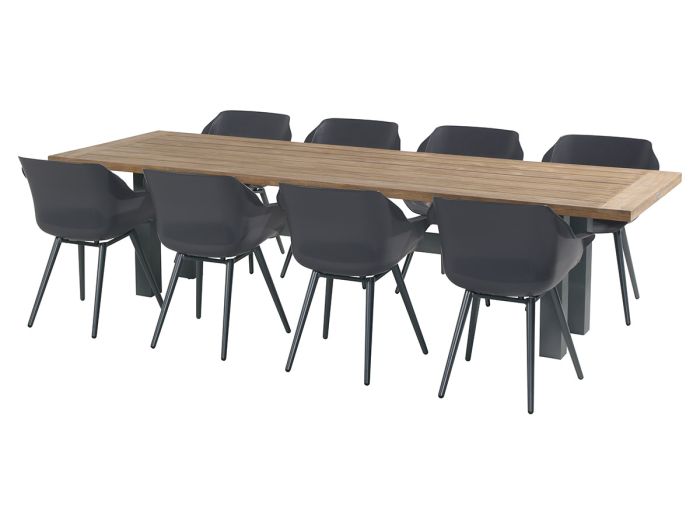 Das Hartman Sophie Studio Yasmani 300 Xerix Diningset besteht aus einem schönen robusten Holztisch und acht Schalenstühlen.