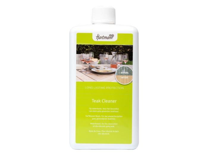 Da Gartenmöbel aus Teakholz das ganze Jahr über draußen stehen gelassen werden können, werden sie oft sehr schmutzig. Eine gute Reinigung ist daher sicherlich ein- bis zweimal im Jahr notwendig. Mit dem Hartman Teak Cleaner ist diese Arbeit in kürzester Zeit erledigt! Dieser Reiniger reinigt Teakholz und andere Arten von Hartholz gründlich und entfernt Schmutz und Flecken. Der Reiniger stellt zudem die ursprüngliche hellbraune Farbe wieder her. Gleichzeitig werden die Poren des Holzes geöffnet, sodass Sie das Holz mit dem Hartman Teakholzschutz nachbehandeln können.