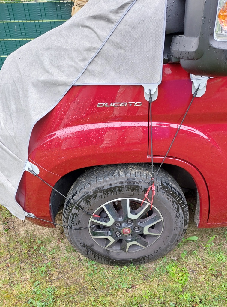 Die Abdeckung schützt auch die Lackierung Ihres Wohnmobil vor Verblassen und Schmutz. Die Montage dieser Frontschutzplane ist sehr einfach, Sie müssen sie nur in die Ränder der Tür hängen. Die Abdeckung wird mit zehn Gummiklemmen geliefert, die dafür sorgen, dass die Plane gut gespannt ist und bleibt. Selbst bei besonders kalten Temperaturen bleibt diese Plane flexibel!