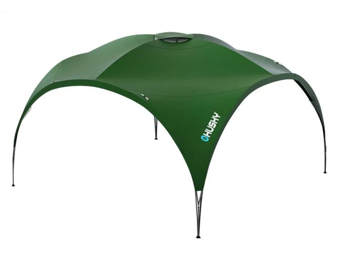 Das Husky Broof L Shelter - 365 x 365 x 220 - Grün ist ein Partyzelt oder Schutzdach, das sich für verschiedene Outdoor-Aktivitäten eignet. Es schützt sowohl vor Sonne als auch vor Regen. Durch die stabile Konstruktion und das Verankerungssystem ist es auch bei windigem Wetter zuverlässig und ermöglicht es, länger gemeinsam an der frischen Luft zu bleiben. Das einwandige Shelter mit innenliegendem Gestänge wird ohne Seitenwände geliefert, diese können jedoch separat bestellt werden.