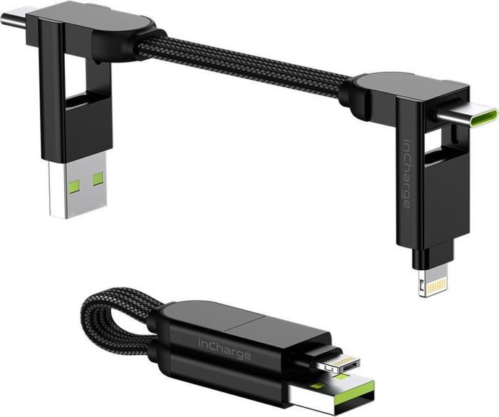 Ein Ladekabel für Ihr iPhone, Tablet oder Laptop immer zur Hand? Mit dem inCharge X ist das alles möglich. Dieses Kabel hat einen USB- und USB-C-Anschluss auf der einen Seite und einen Lightning-, Micro-USB- und USB-C-Anschluss auf der anderen Seite. So können Sie fast jedes Telefon, Tablet, Controller, jede Drohne, jeden Laptop und alles andere aufladen!