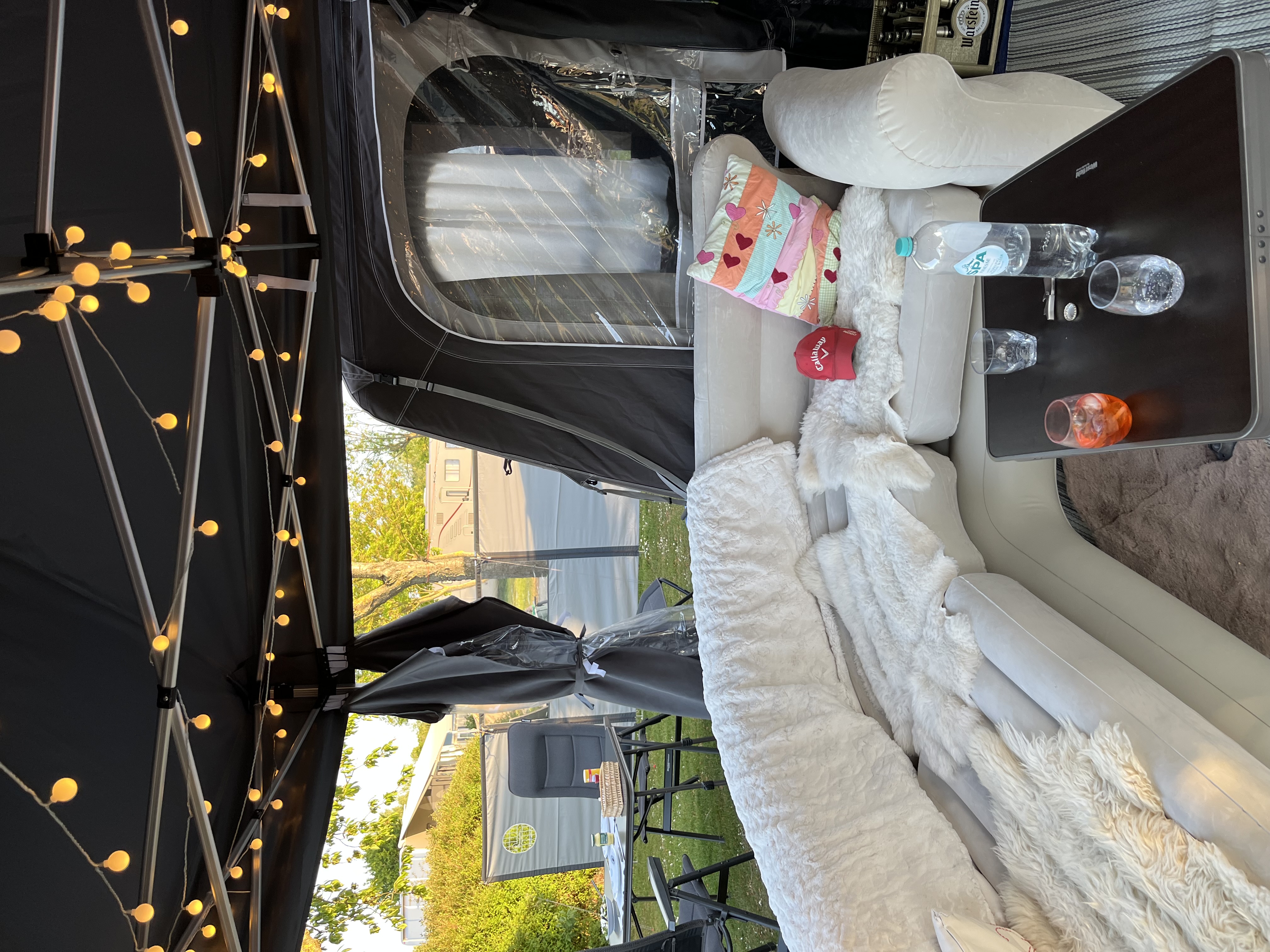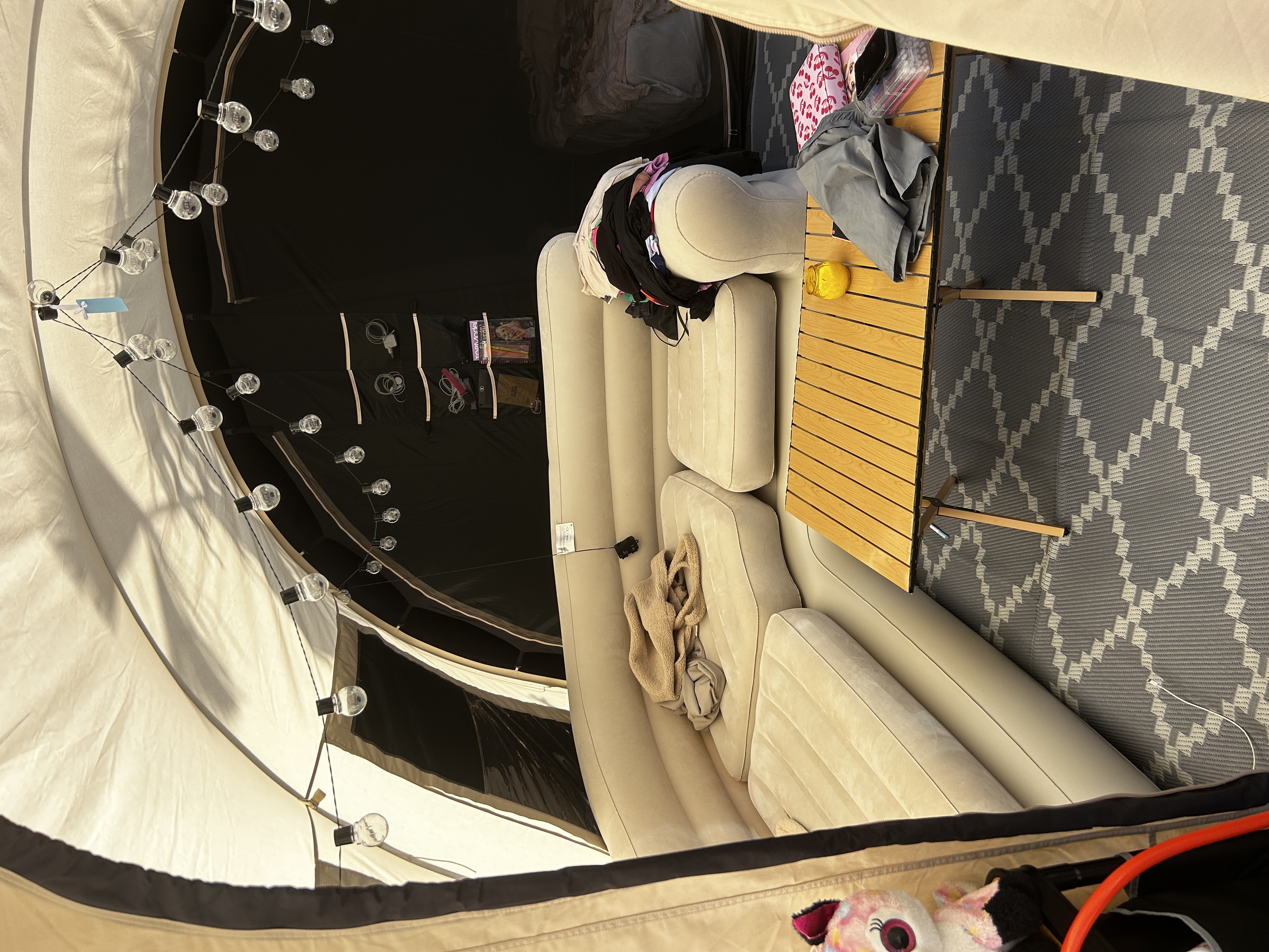 Dieses (Vor-)Zelt oder diese Markise ist mit aufblasbaren Luftschläuchen anstelle von Zeltstangen ausgestattet