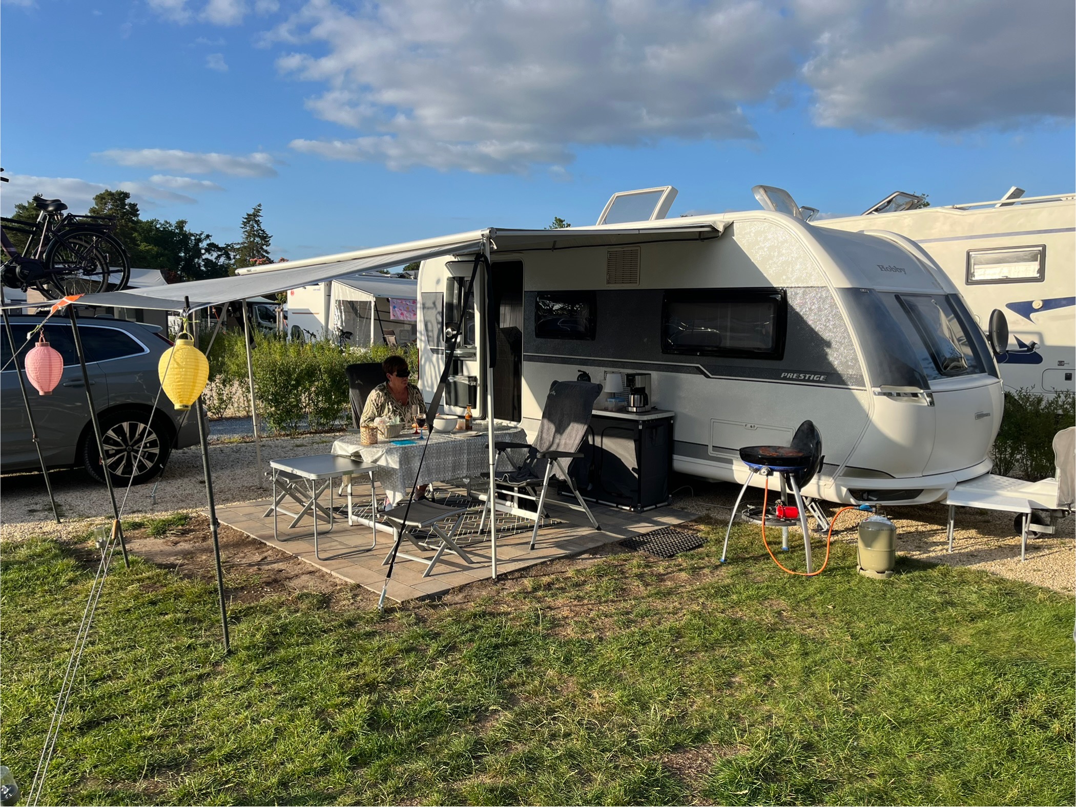 Ein aerodynamischer Wohnwagen ist ein Wohnwagen, der an der Vorderseite vollständig schräg abfällt.