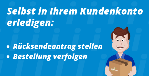 Viele Angelegenheiten, wie z. B. die Beantragung einer Rücksendung innerhalb der 30-tägigen Rückgabefrist, können Sie selbst über Ihr Kundenkonto regeln. Lesen Sie unsere häufig gestellten Fragen durch, um schnell eine Antwort zu finden.