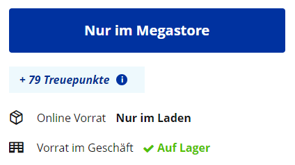 Auf der Produktseite können Sie herausfinden, ob das Produkt verfügbar ist. Wenn ein Produkt den Status "nur im Geschäft" hat, ist es nicht möglich, es dennoch zu versenden.