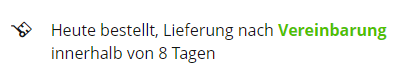 Auf der Produktseite eines Artikels können Sie sehen, ob Ihre Bestellung "Nach Vereinbarung" geliefert wird: