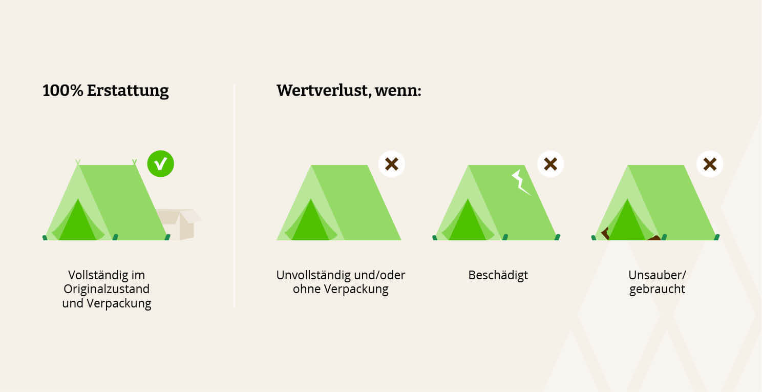 Wenn du das Produkt in Gebrauch nimmst, haben wir das Recht, Kosten einzubehalten. Wenn deutliche Gebrauchsspuren am Produkt vorhanden sind, können wir das Produkt nicht mehr als neu verkaufen. Wir werden dann einen Teil des Neupreises einbehalten. Den Rest des Kaufpreises erhältst du zurück.
