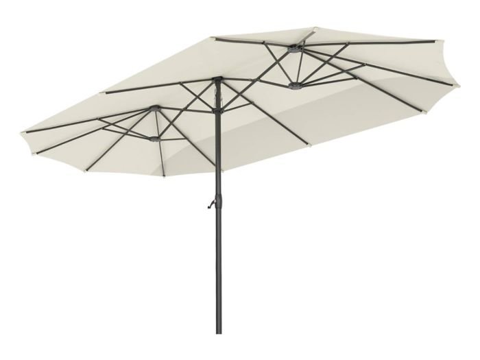 Der LifeGoods Doppelsonnenschirm bietet Ihnen an Sommertagen herrliche Abkühlung! Der Schirm ist groß genug für die ganze Familie. Mit der praktischen Kurbel lässt er sich ganz einfach auf- und zuklappen. Die 12 robusten Metallstreben halten das Polyestertuch straff und fest an seinem Platz. Mit einem UPF (Ultraviolett-Schutzfaktor) von 50+ bietet dieser Sonnenschirm den höchsten UV-Schutz seiner Art! Das große Tuch hat einen Durchmesser von 460 x 270 cm. Es deckt somit bis zu 12,42 m² Bodenfläche ab. Mehr als genug Platz für ein Abendessen mit der ganzen Familie an einem großen Tisch im Garten!